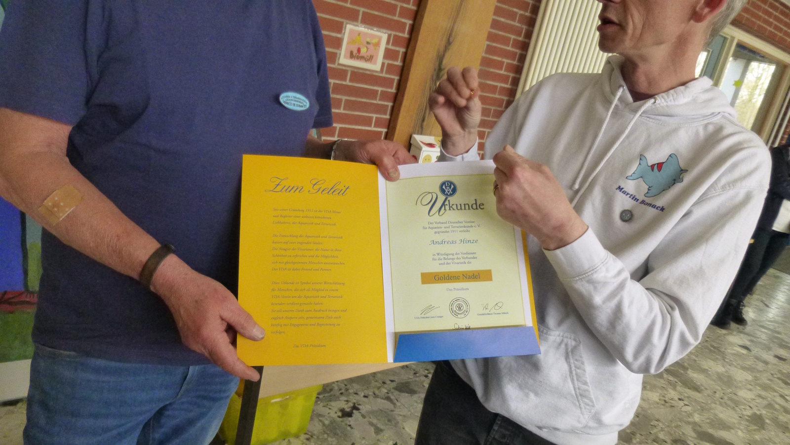 Im Rahmen dieser Veranstaltung verlieh Martin Bonack (Vorsitzender des Bezirks Hamburg-Niederelbe des VDA) unserem Vereinsmitglied Andreas Hinze die Goldene Ehrennadel des VDA für seine 40jährige Mitgliedschaft im Verein und im VDA.